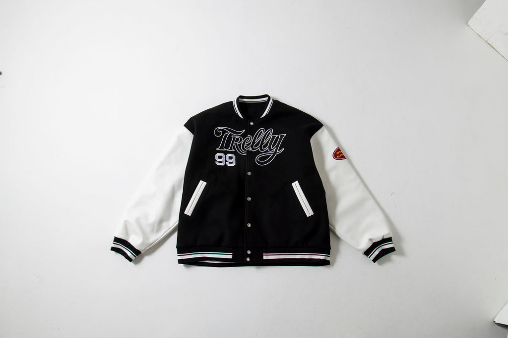 王道のデザインでありながら、細部にブランドらしさを詰め込んだスタジアムジャケットです。