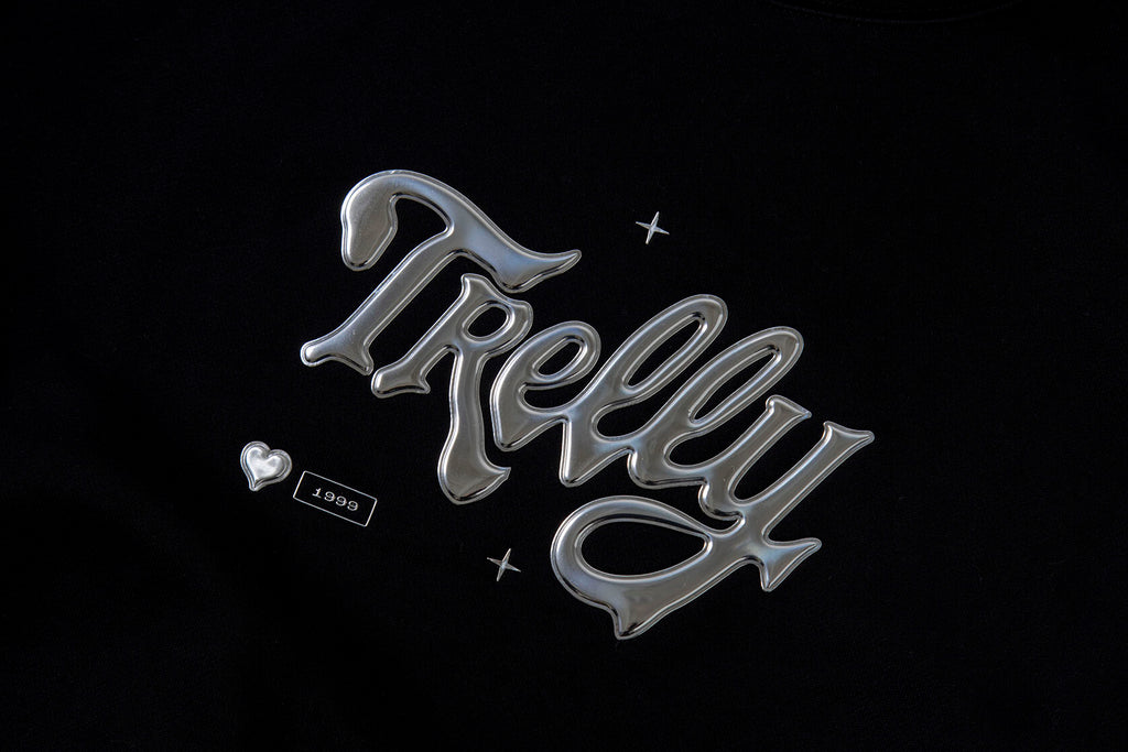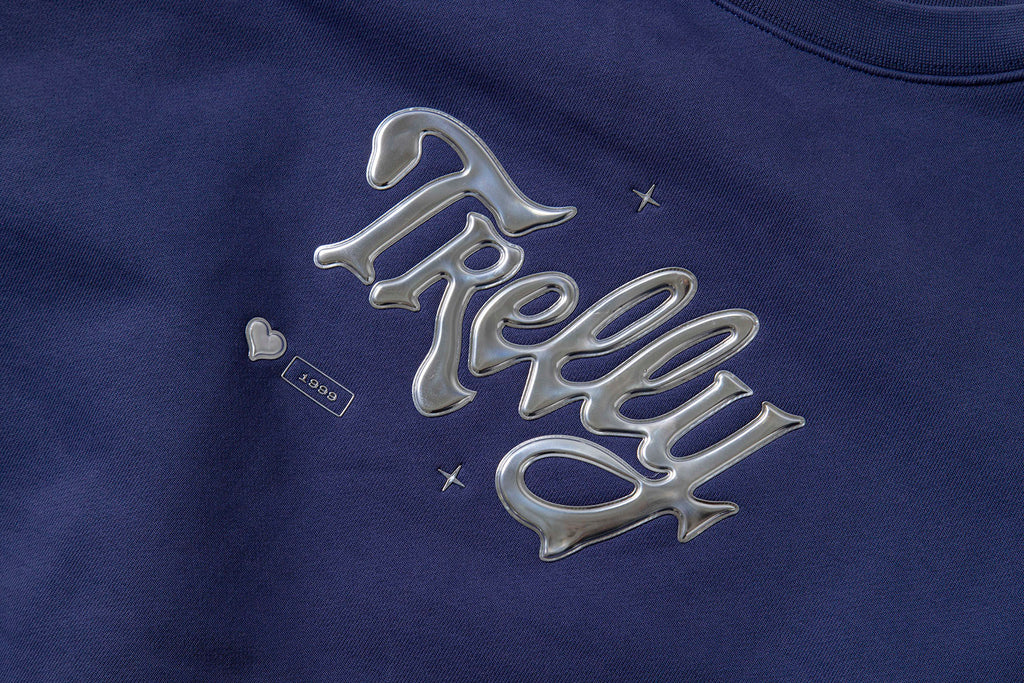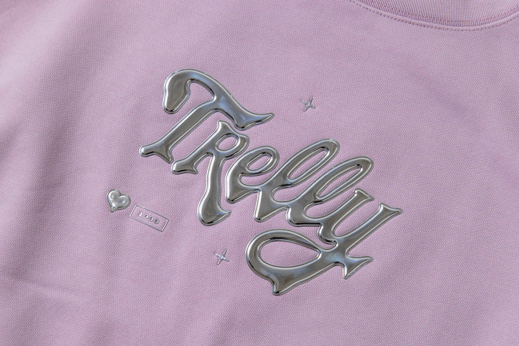 胸元に施したTRellyロゴ刺繍が、シンプルな中にも存在感をプラス。