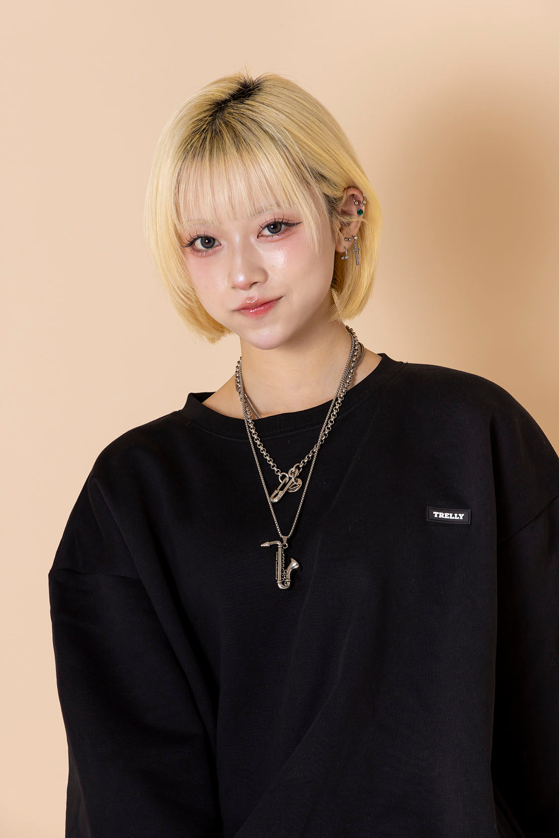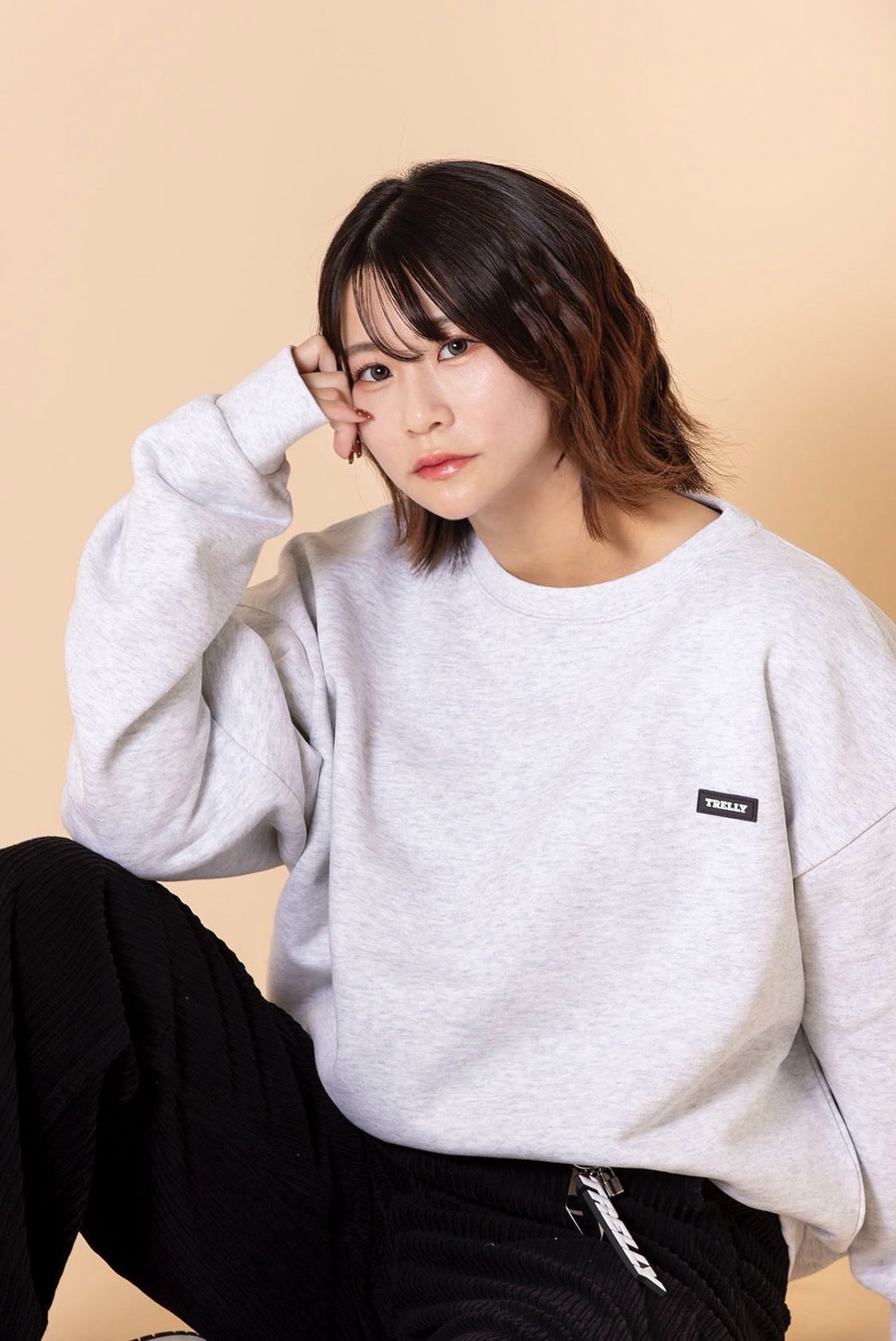 胸元にワンポイントでTRellyロゴを立体的にあしらった、シンプルながら存在感のあるクルーネックスウェット。
